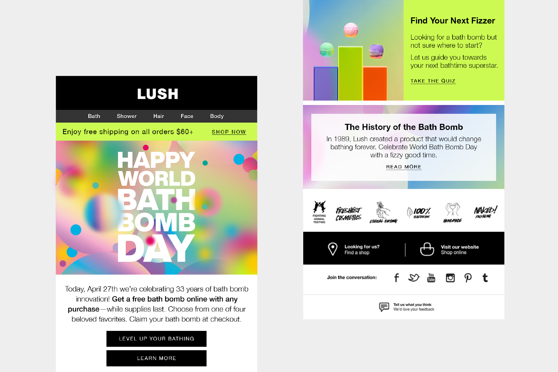 In 1989 Lush created the very first bath bomb. 33 years later Lush target to re-establish leadership in bath innovation and generate brand awareness. Taking your bathing to the next level and reinforcing Lush as a wellbeing brand.